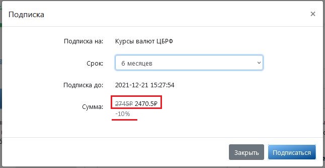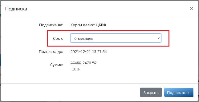 Обратите внимание! На подписку сроком 6 месяцев действует скидка 10 %, 12 месяцев — 20 %.