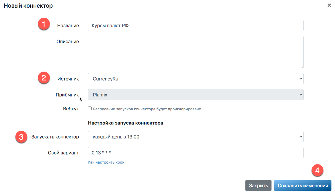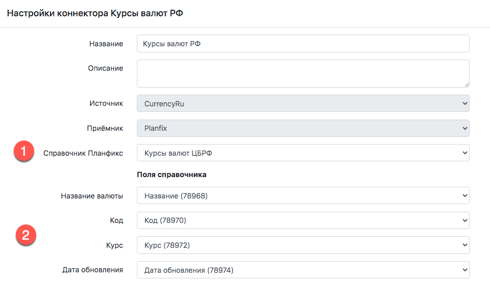 Коннектор на базе этого модуля по выбранному расписанию обновляет справочник с валютами текущими курсом.